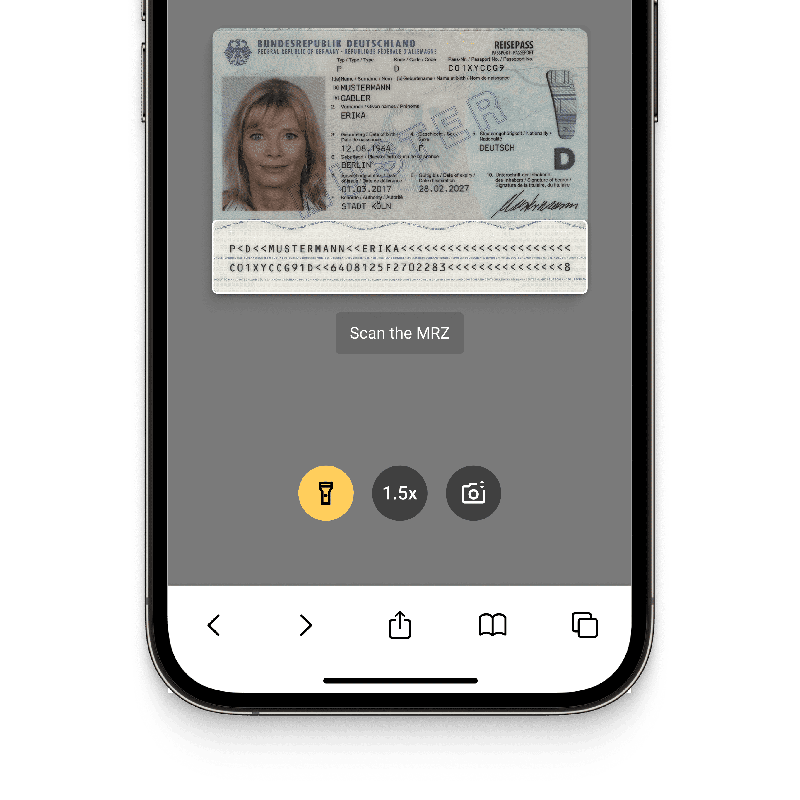 - Document Data Extractor: Through this feature, the SDK offers document detection and data capture capabilities for a wider range of documents. It accurately identifies and crops various standardized document types, including German ID cards, passports, driver's licenses, residence permits, and European Health Insurance Cards (EHIC). It uses the Scanbot OCR Engine for accurate data field recognition, without requiring additional OCR language files.